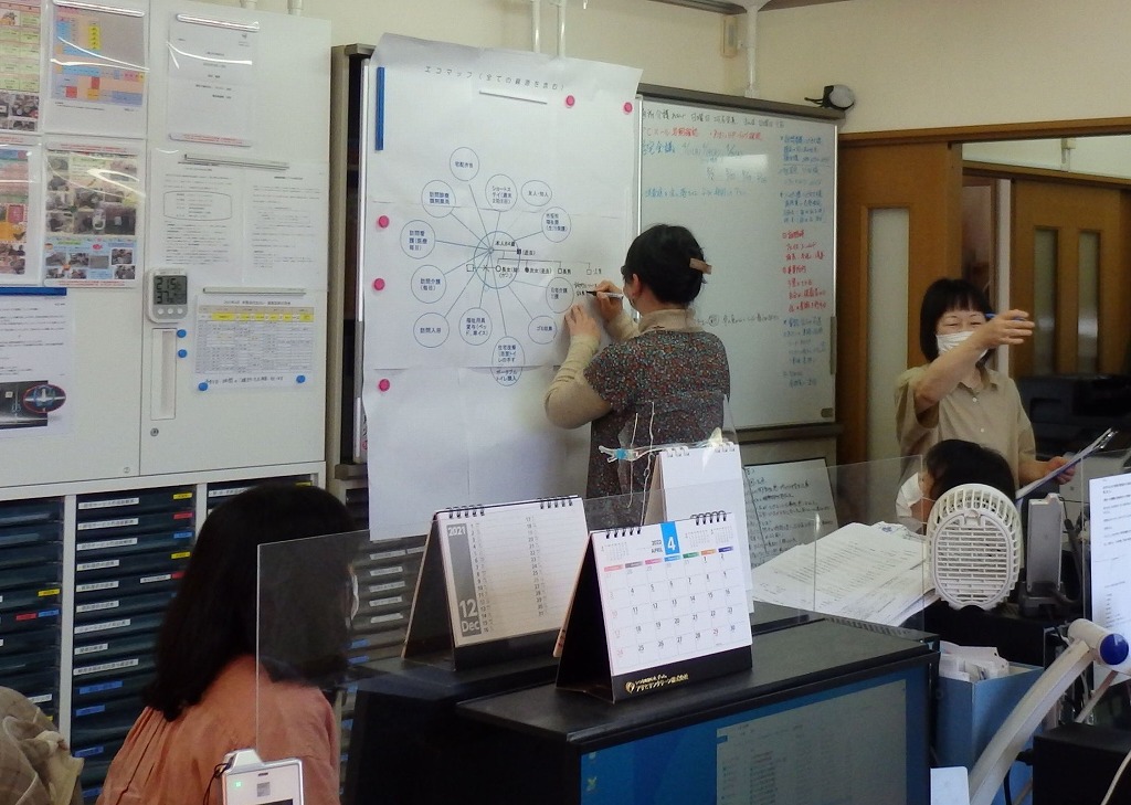 4月19日の研修では、エコマップを用いた事例検討会を行いました。