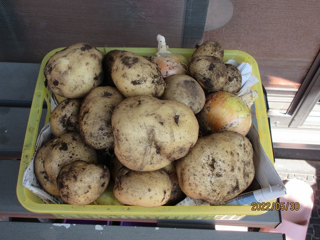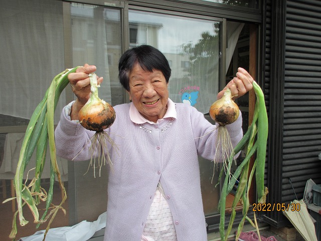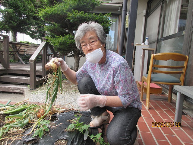 ↑まんまのミニ畑では、新玉ねぎやじゃがいもの収穫をしました