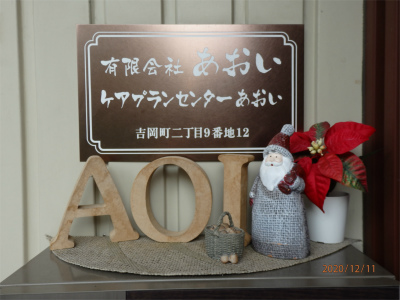 ケアプランセンターあおいの玄関にもクリスマスディスプレイがしてあり、