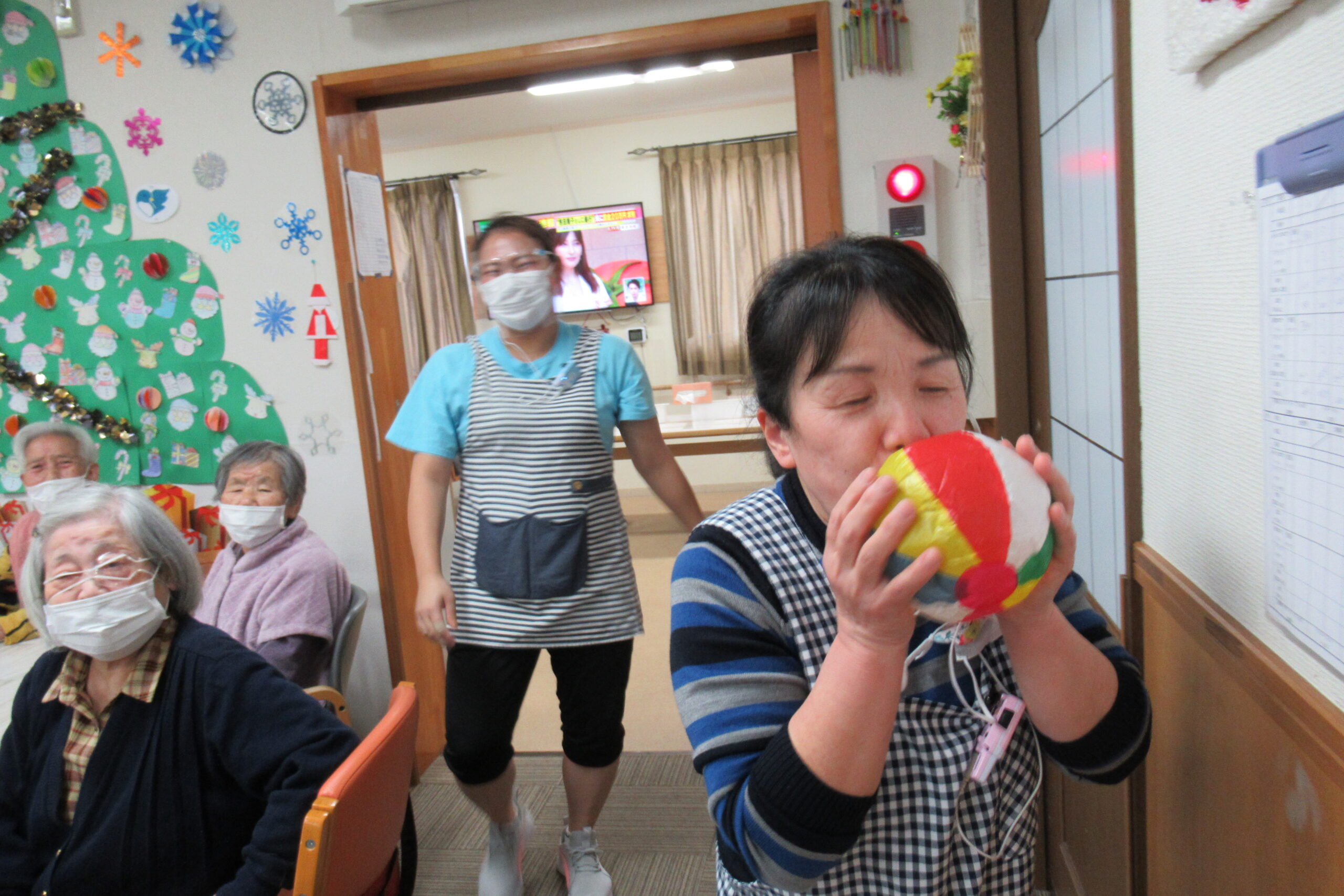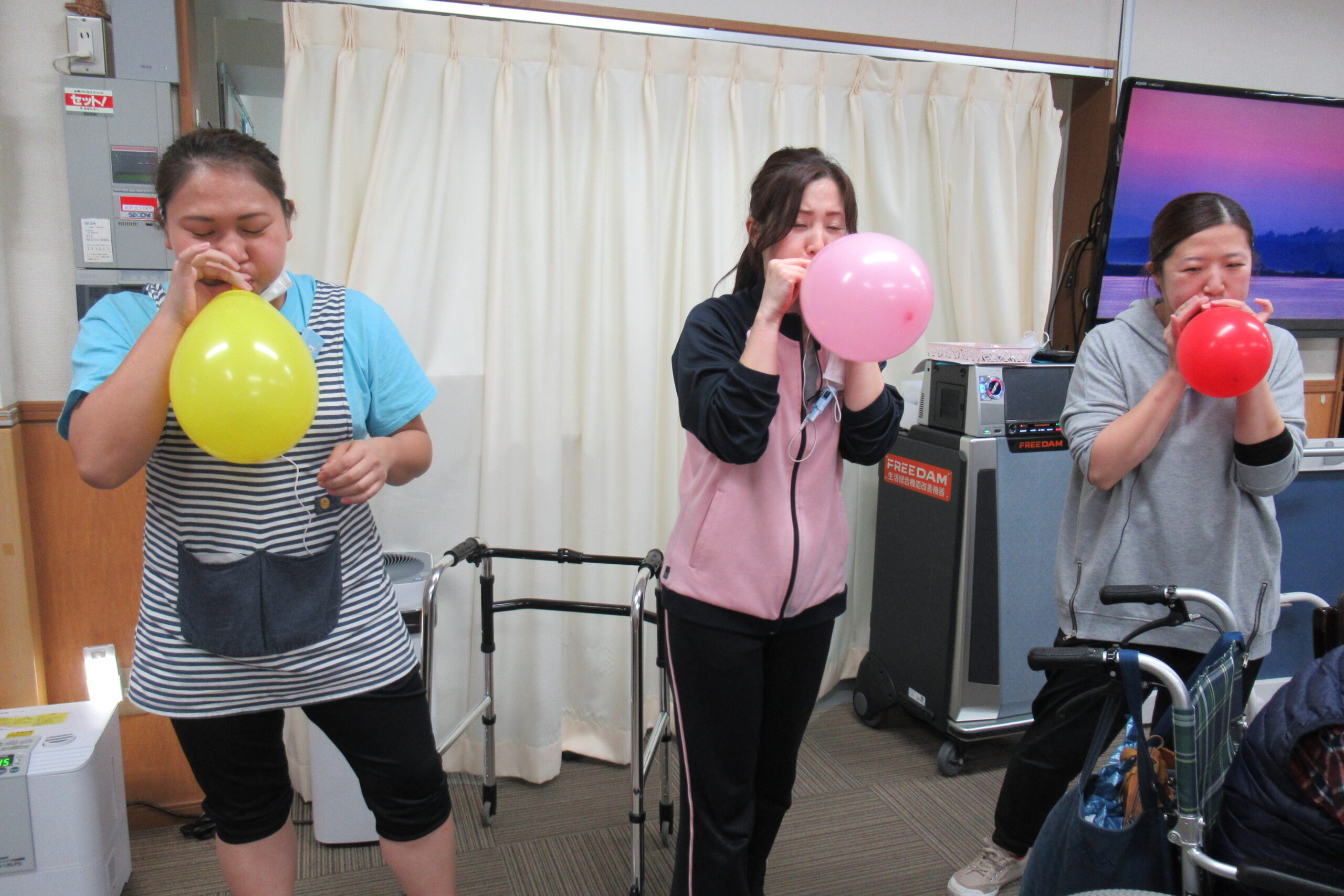 急遽、職員対抗・風船ふくらまし大会が勃発💣