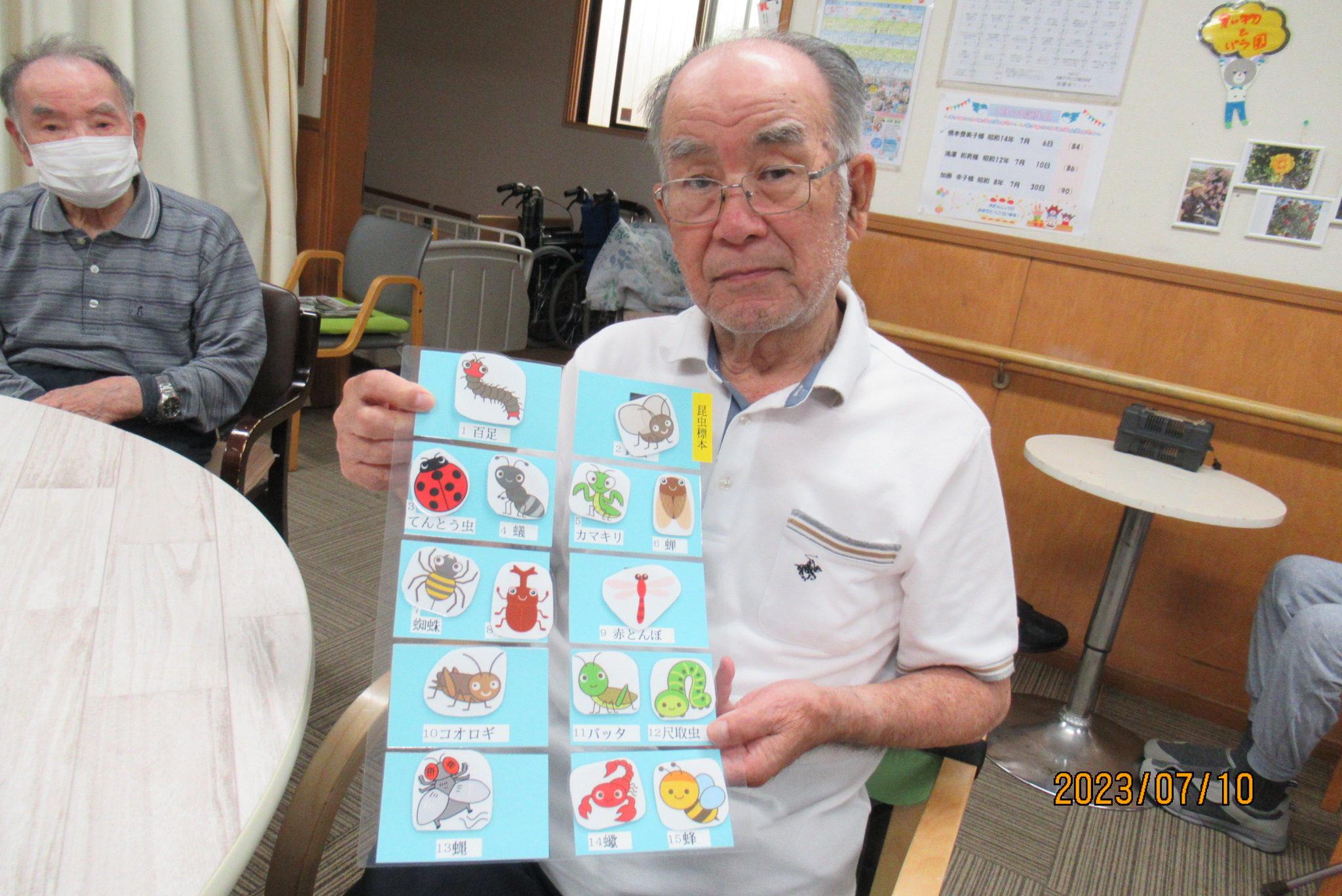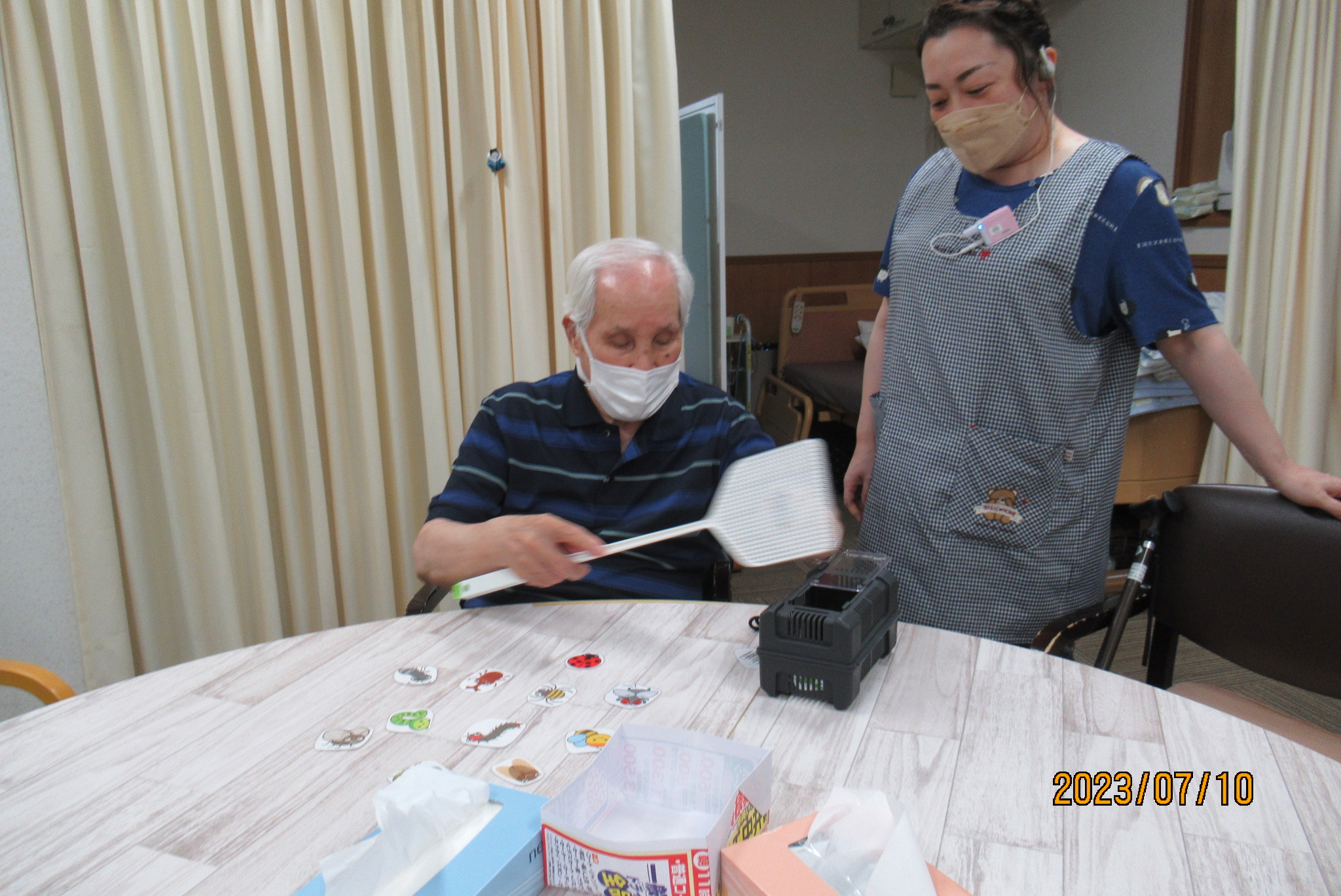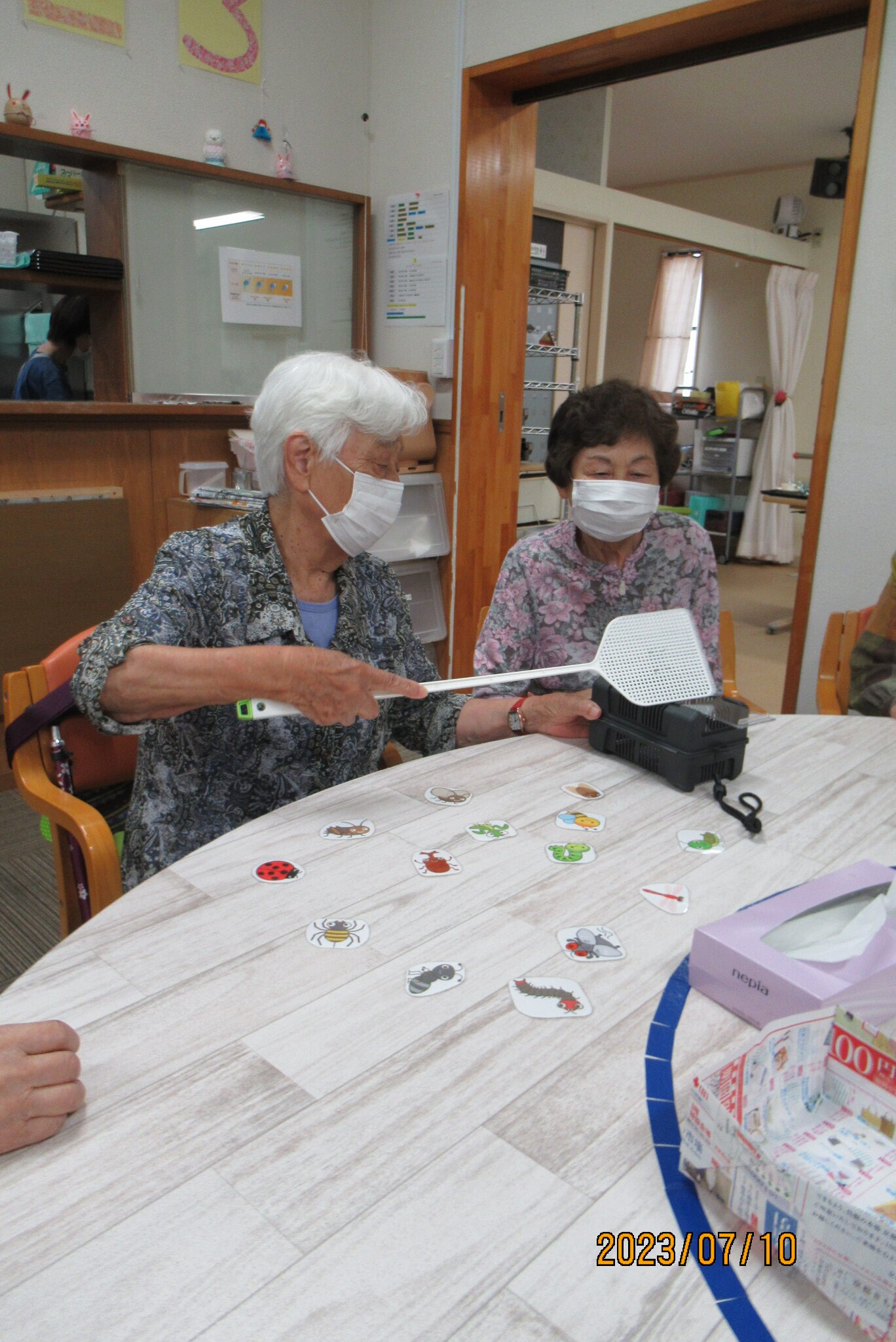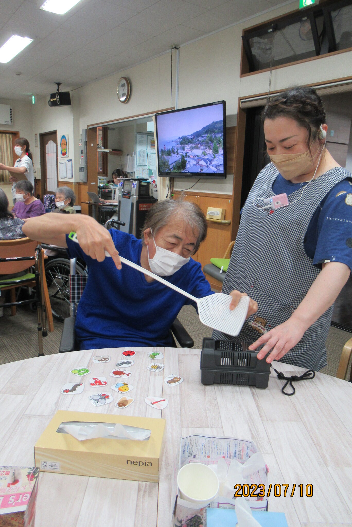 ハエ叩きで虫を捕り、虫籠に入れるレク![]()