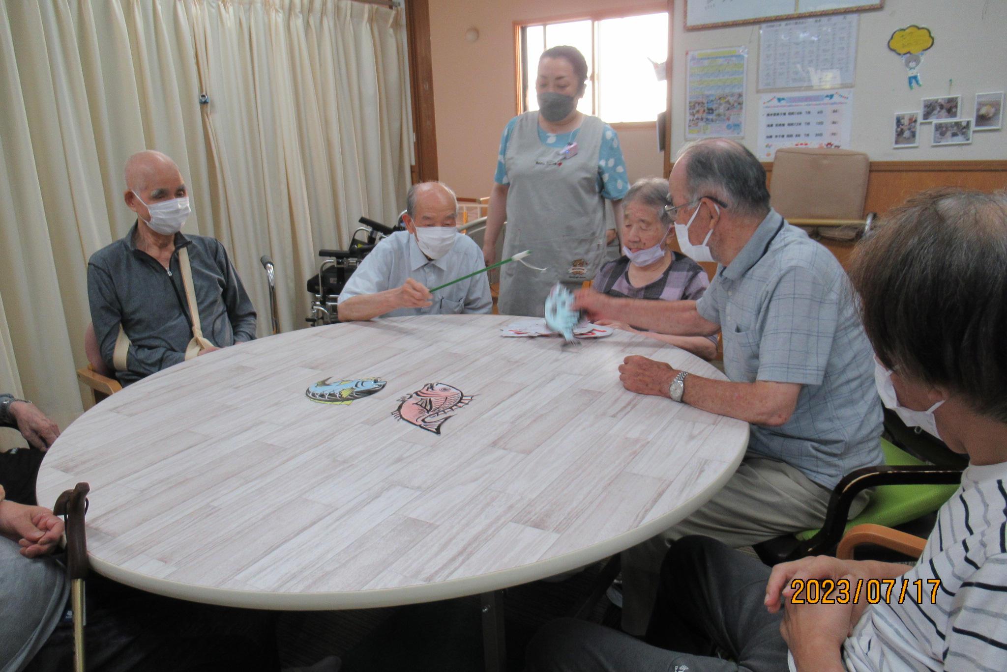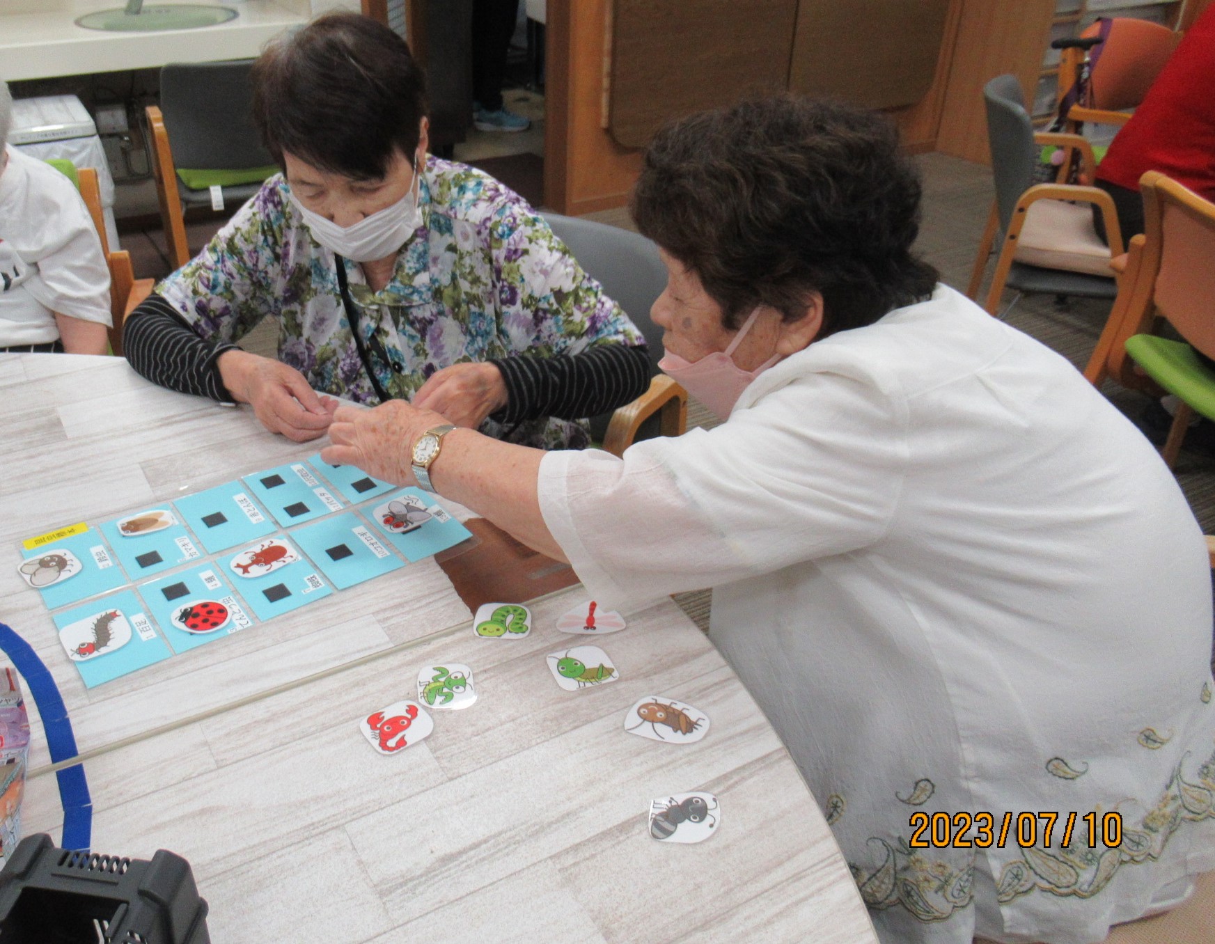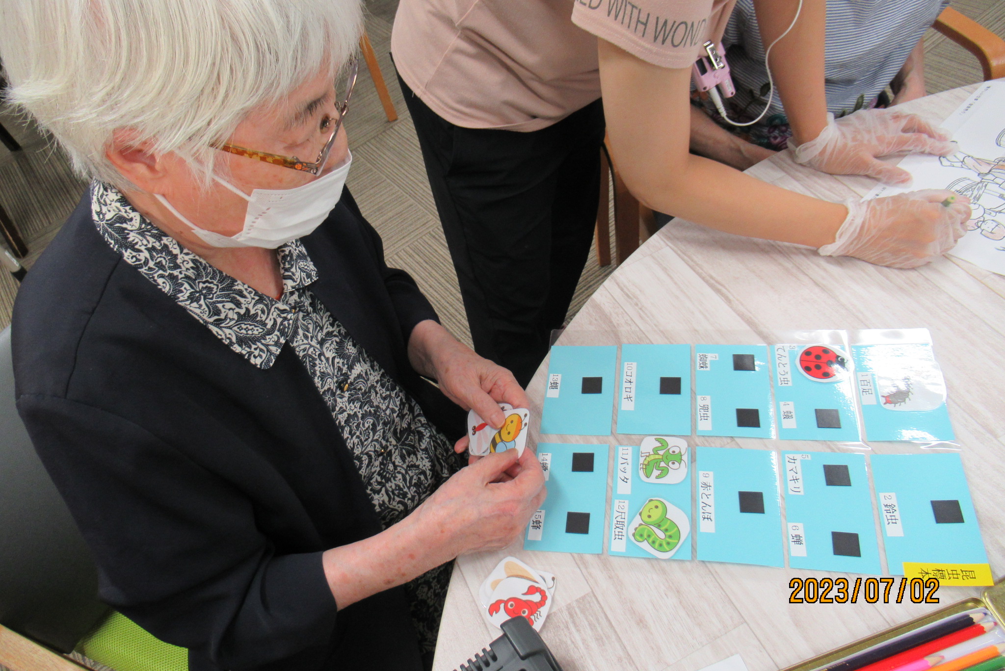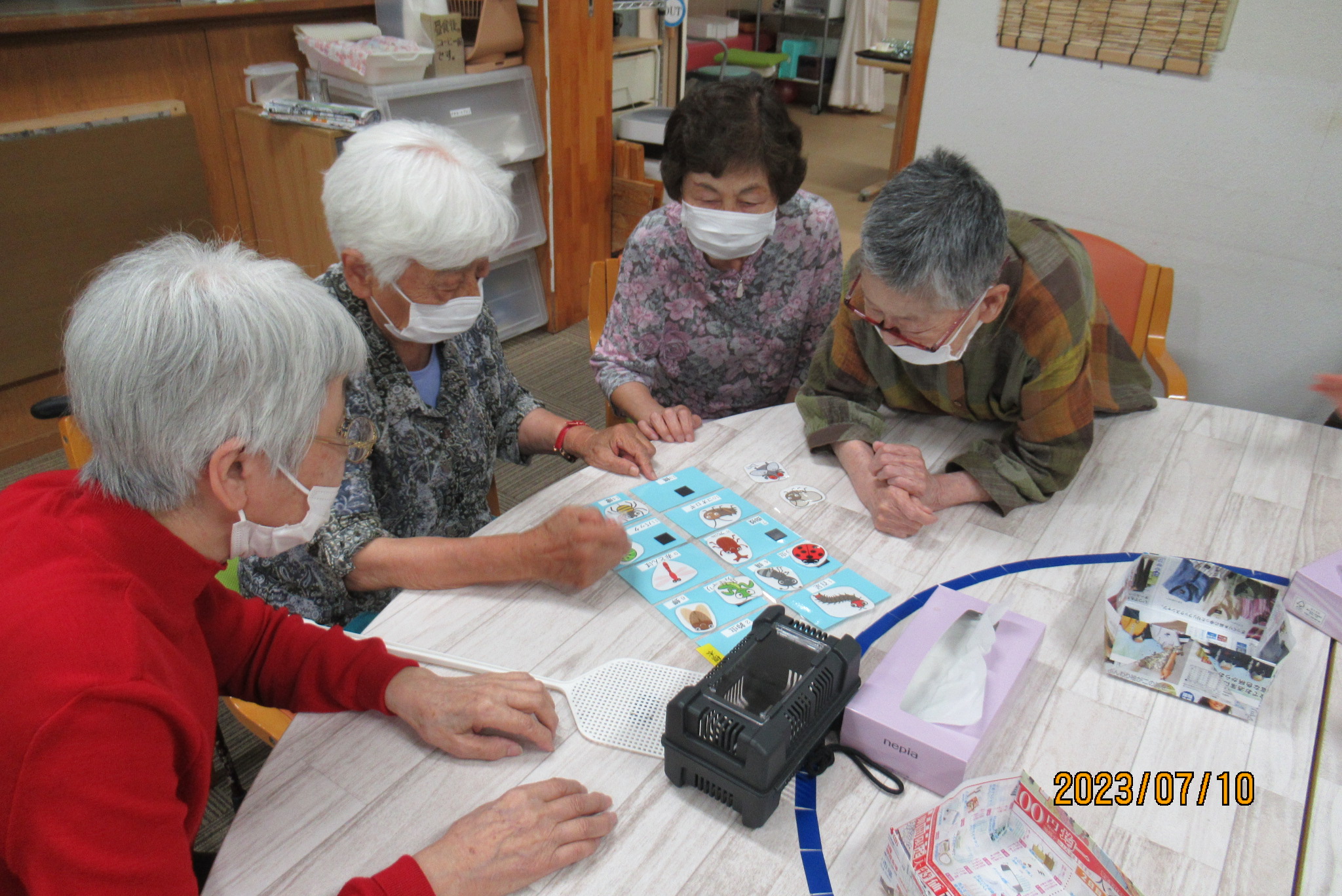 ハエ叩きで虫を捕り、虫籠に入れるレク![]()