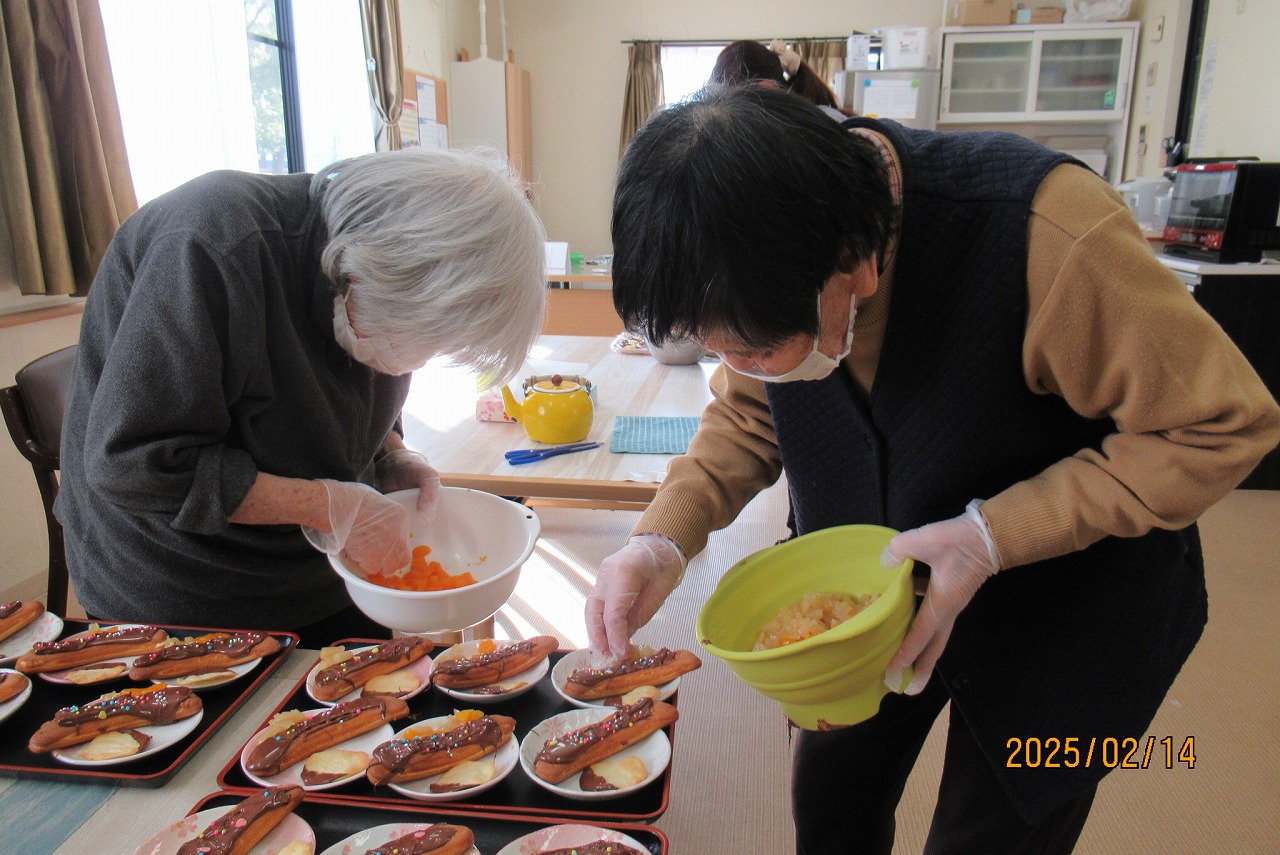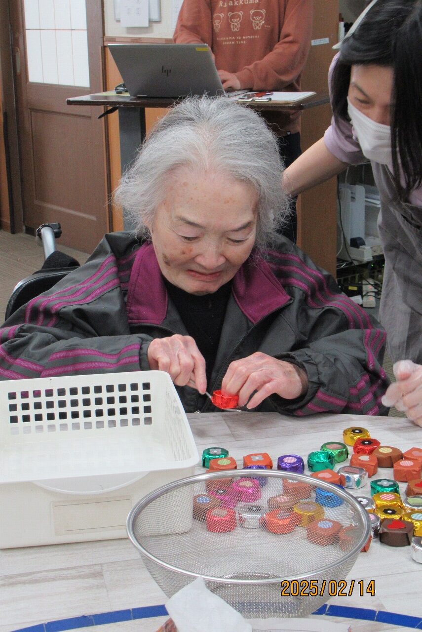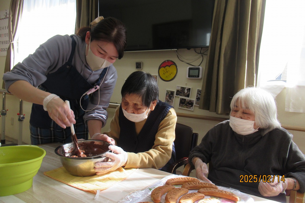 あおいでは、チョコに因んだレクリエーション&おやつ作りを行いました![]()