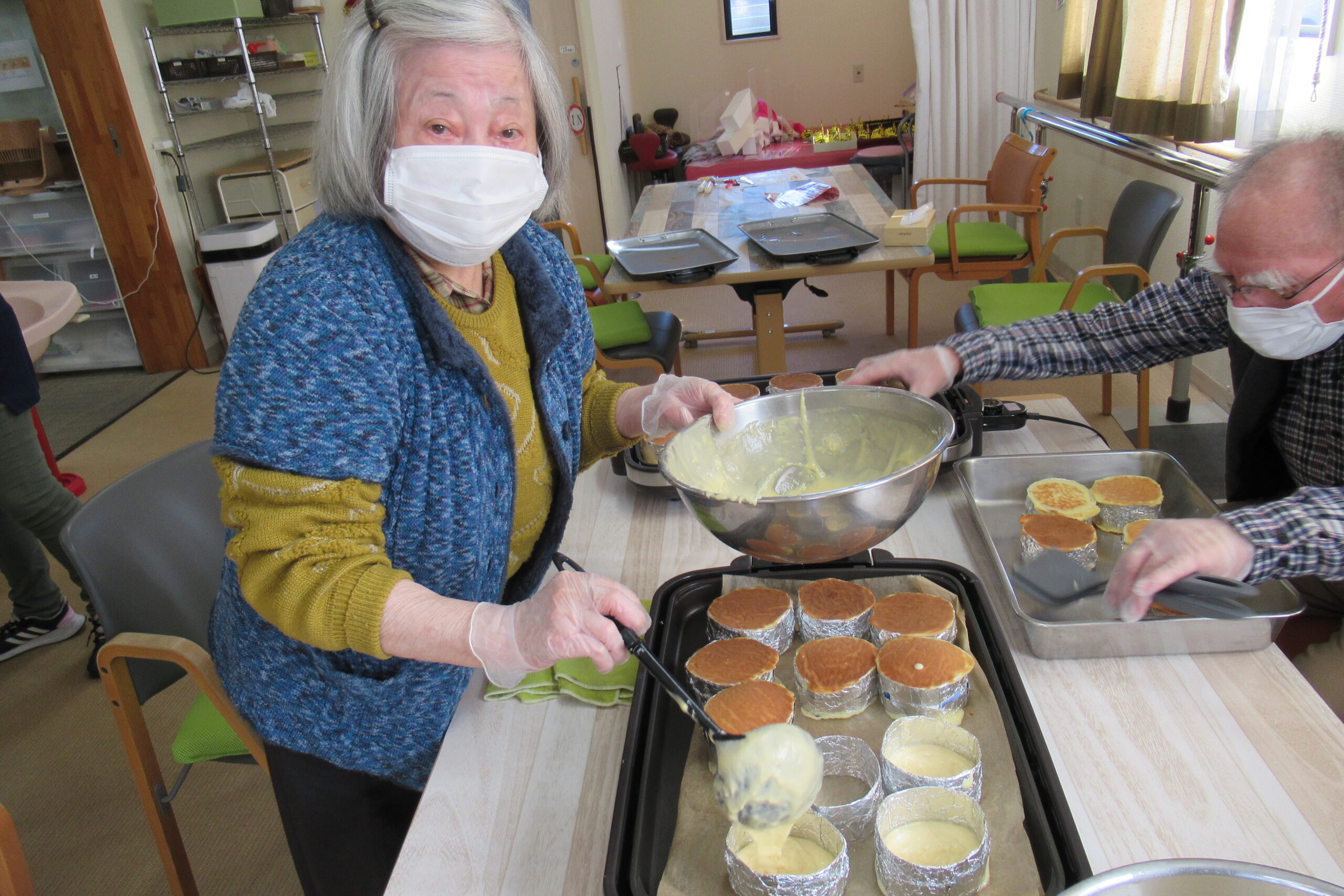 選抜隊は、午前中から、生地をまぜまぜ&焼き焼き🍳