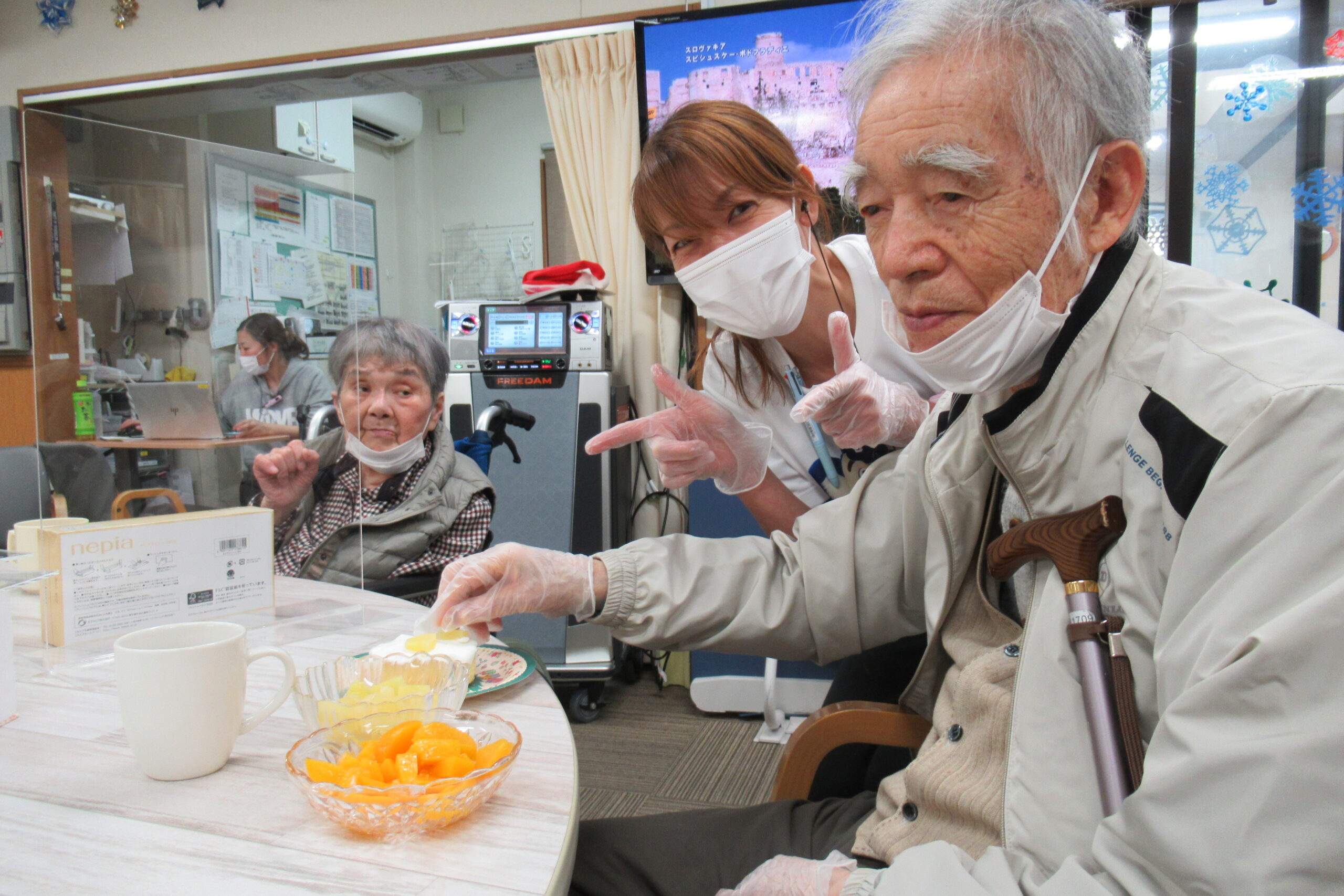 あおい到着後は、サンタ帽や衣装を着用され、ご利用者様も、クリスマスを盛り上げてくださいました![]()