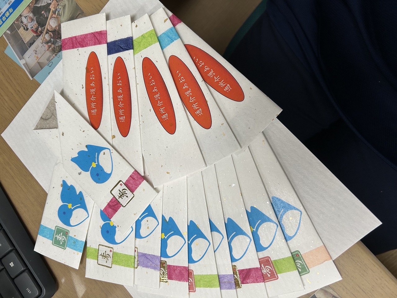 当日は、職員手作りお箸袋(名前入り)を添えて