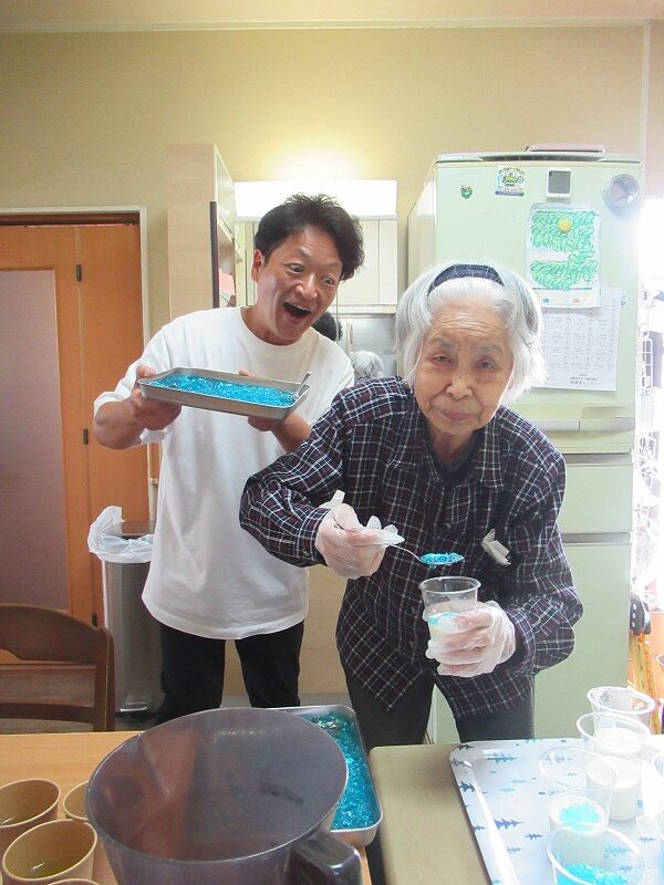 そして、七夕なのでおやつに杏仁豆腐と二層のブルーハワイのゼリーを作りました!