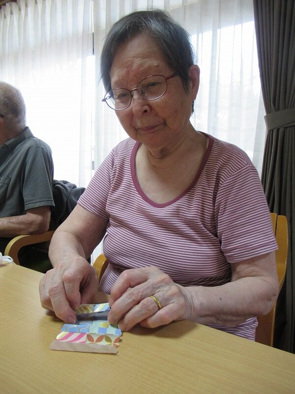 皆さん指先を使いながら一生懸命、折り紙をじゃばらに折りました。