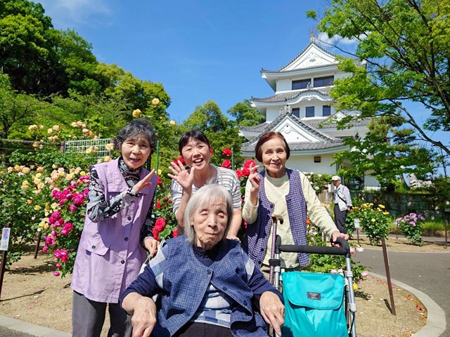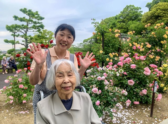 別の日に出かけた日は、到着すると「あおい」の皆さんもバラ園に来ており、一緒に