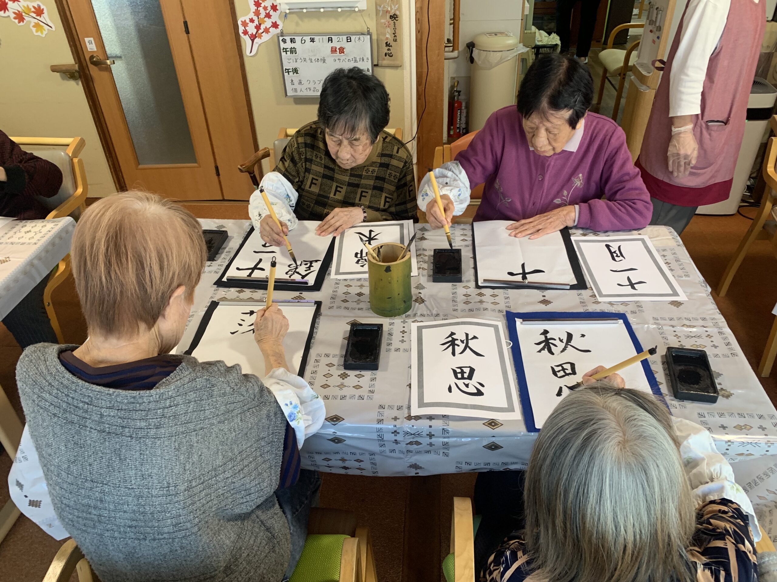 月に1回~2回書道教室や月に1回生け花教室等を取り入れさせていただいています!!