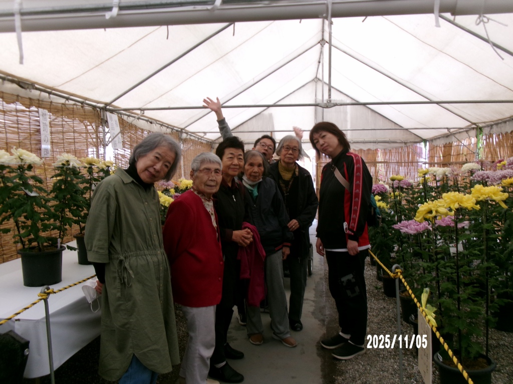 「これ見て。立派だねー。」素晴らしい菊の花に皆様見入っておりました