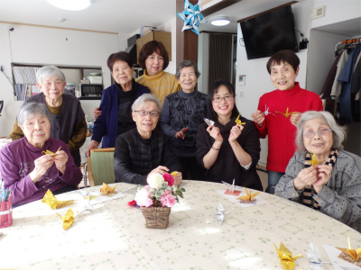 続いては、色り紙を使って日本の代表の折り鶴を一緒に折りました![]()
