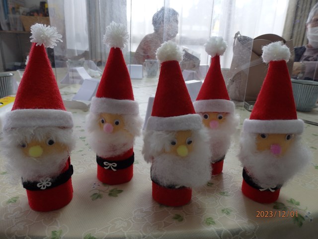 トイレットペーパーの芯を使ってサンタクロース作りをされました🎅