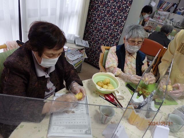 収穫したじゃがいもを使って利用者様とおやつ作りをしました。