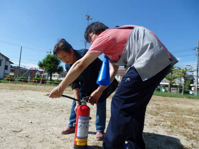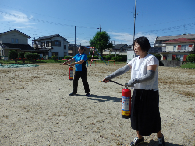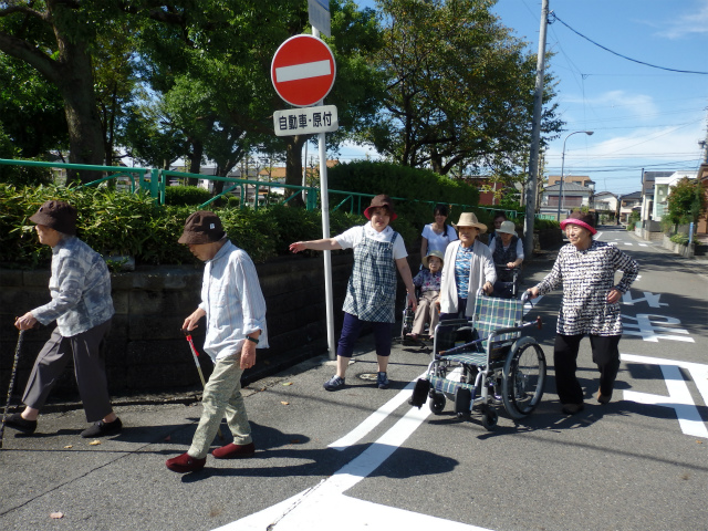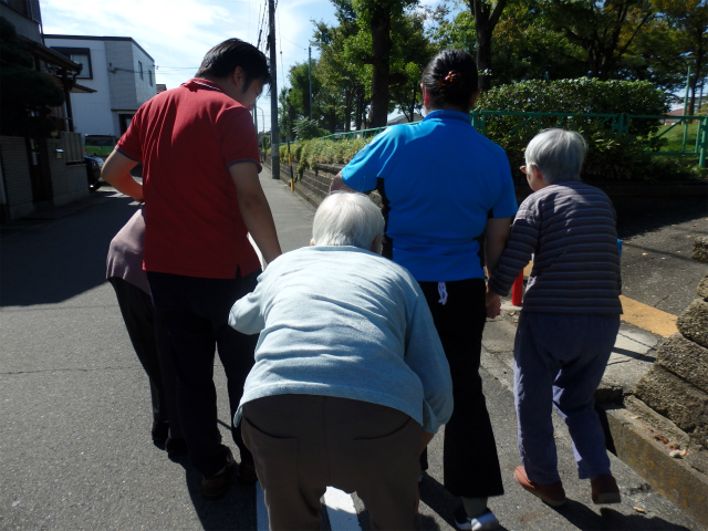 利用者様に「今日は避難訓練をいたします。」「地震!地震!」