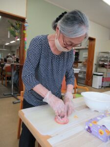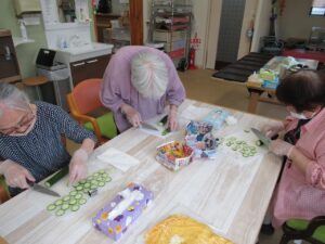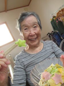 トッピングの野菜をカットして、星形にくり抜きますっ![]()