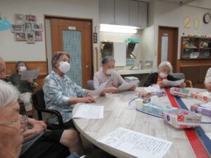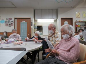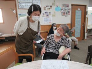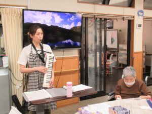 利用者様全員で『われは海の子』や『星影のワルツ』、『お祭りマンボ』など