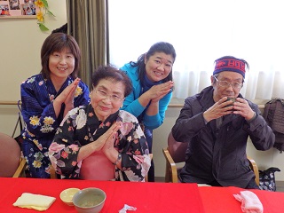 ひな祭り&茶話会 2014 3/11 あおい日記 2014年3月11日 あおい美人職員によるお抹茶を たてている場面です。 ご利用者さんも着物を着て参加。 皆さんとても楽しい茶話会の ひとときを過ごしていました。 一人羽織りゲームは大うけで 笑顔が絶えなかったです! あおい日記