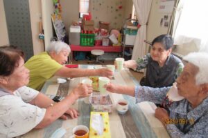 敬老会スタートは、管理者挨拶からの乾杯でスタート