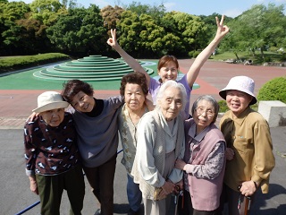 森林公園へ外出しました。ご利用者様は気持ち良い風に