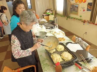 お好み焼き! 2014 12/01 あおい日記 2014年12月1日 機能訓練としてお好み焼きを ご利用者と職員と一緒に作りました。 凄く上手に手際よく作られていましたよ。 さすがですね! あおいの岩崎でした。 あおい日記