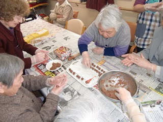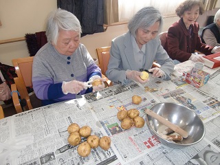 茶話会&おやつ作り 2015 3/06 あおい日記 2015年3月6日 じゃじゃーん!茶話会三人娘で~す! おやつ作りをしています。只今ジャガイモの皮むき中! ジャガイモとチョコレートを混ぜた洋菓子です。 あおいの西田でした! あおい日記