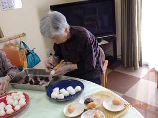 先日、おやつ作りで、利用者様とおはぎを作りました
