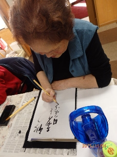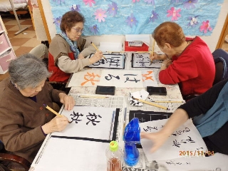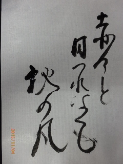 書道 2015 11/30 あおい日記 2015年11月30日 こんにちは!(^^)! 先日、あおいでは書道を行いました。 皆さん、筆に気持ちを込めて書いておられました! 筆を持つと、筆を置くまで口を開かず、とても真剣な表情でした。 こんなに上手に書けたら自信が持てますね。 秋をイメージされて、素敵な作品も書いて下さいました。 私、20年振りに筆を持ったわと言われた方も。 皆さんの真剣さが伝わってきた 一日でした。 また、書道の時間を設けたいと思います。 あおいの西田でした(#^.^#) あおい日記