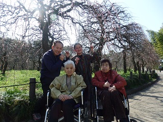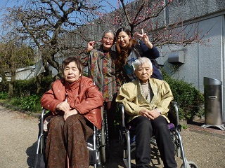 下に咲いていた梅で皆さんで写真を撮りました(*^。^*)