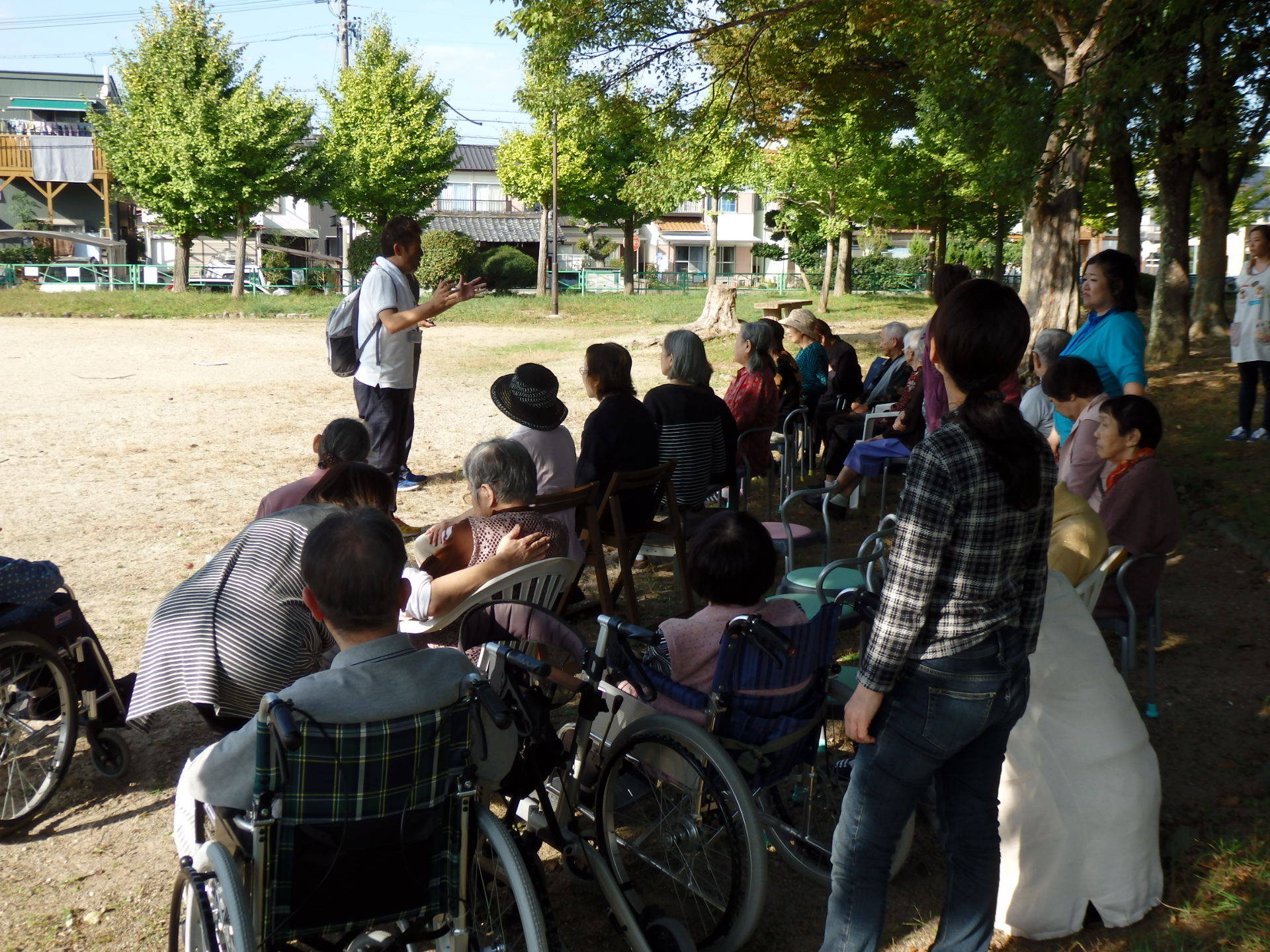 あおいでは地震等の天災に備え、対応が出来る様に避難訓練を年に2回行っています。