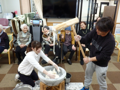 職員のお餅つき