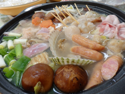 昼食は、野菜もお肉もお魚もたっぷりの水炊き鍋