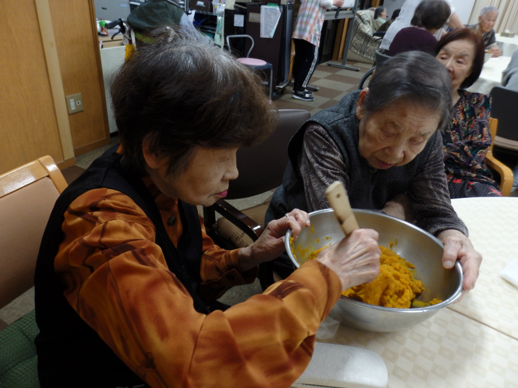 湯がいたカボチャが柔らかすぎて茶巾絞りにできない状態にっ![]()
