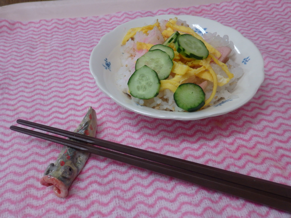 そこで昼食にちらし寿司を、おやつには甘酒のブラマンジェ(←ババロアみたいなお菓子でした)を作りました。