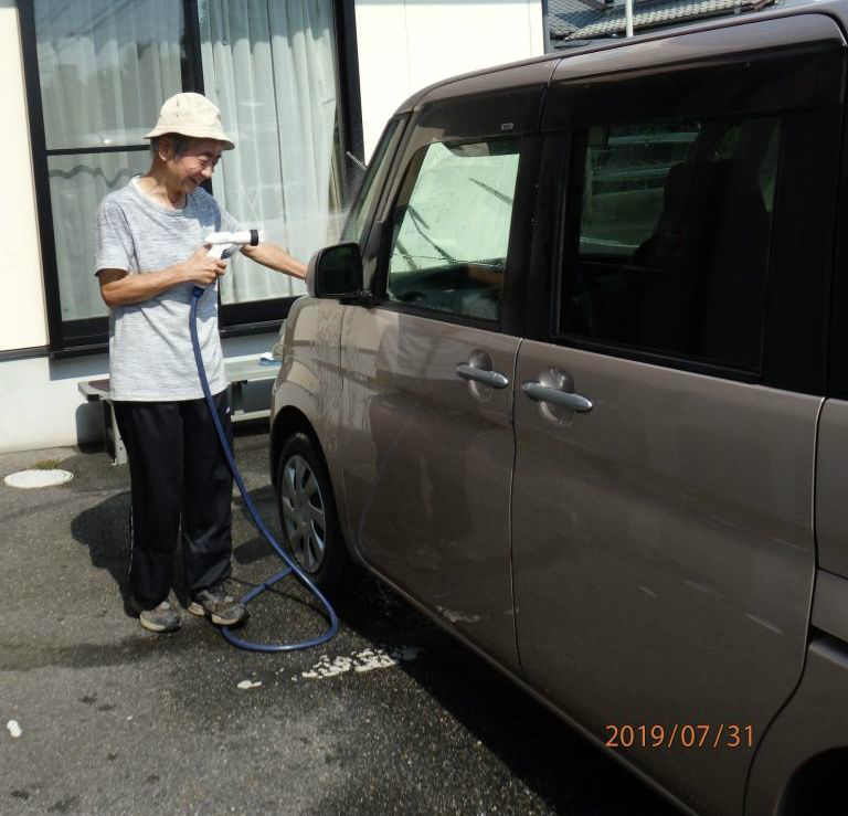 そんな青空の下で送迎車をきれいにしてくれているあおいのクリーンスタッフさんです![]()