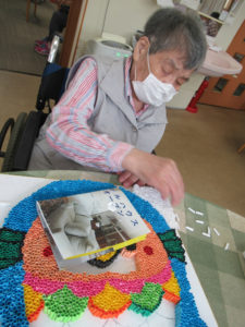 7月から機能訓練として、ペーパークラフトで作成していました『アマビエ』がようやく完成いたしました!