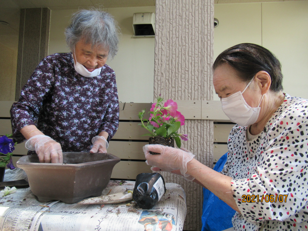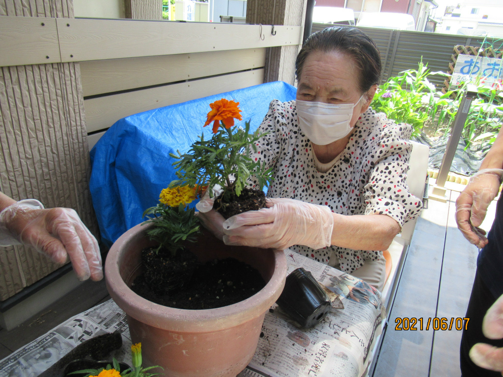 あおいのお庭にも可愛らしい寄せ植えのお花を