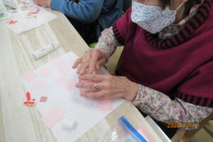お次は、耳・目・頬っぺた・・尻尾と、ペタペタ🖐