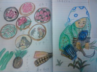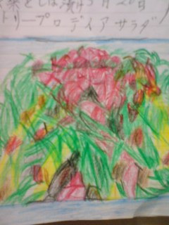 利用者様の作品その2 2011 6/02 あおい日記 2011年6月2日 あおいの木村です 今日は 色彩豊かで活き活きした絵を描いてきてくださる T様の作品をご紹介しま~す 草刈りしているおばあさんの表情が好き 色とりどりで栄養バランスの良さそうなサラダ 三重県上野市と松阪市のご当地キャラクター 春らしいさわやかな色彩のちらし寿司 親子とクマが仲良く楽しそう 次はどんな絵を描いてきてくださるのか いつも楽しみにしています あおい日記