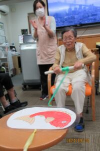 普段は静かにあまり活動的ではない方から大きな笑い声が聞こえて来たり、素早く体を動かす姿が見られたりして大いに盛り上がりました
