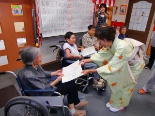 当日は、管理者より祝いの節目の利用者様へ日々の感謝を込め表彰式が行われました