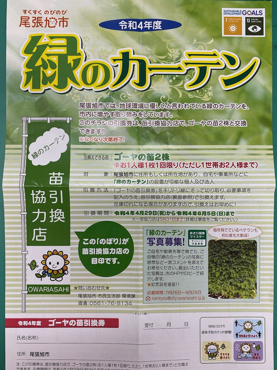 尾張旭市では、省エネ、節電に向けた環境に配慮した取り組みとして、