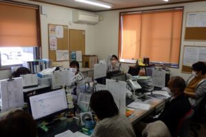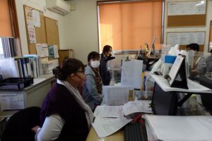 以前は資料を配布していましたが、パソコン画面で資料を見ながら行いました。