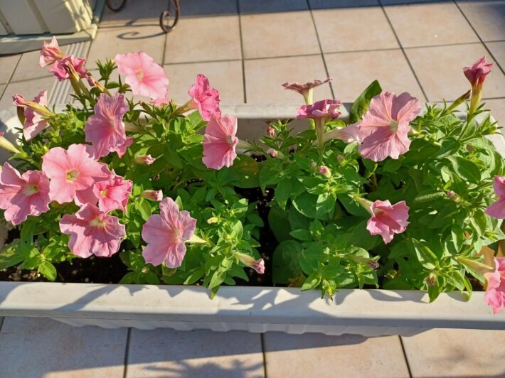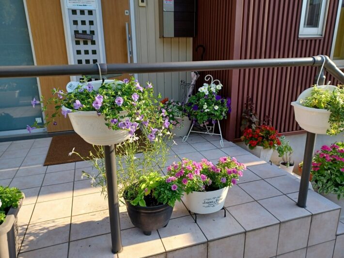 天気予報を見ては、ペチュニアの花をカットをして蒸れないように手入れをしています。