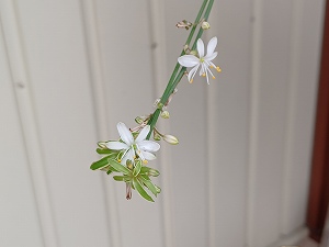 ご近所さんから苗をもらったシラサギ草に花が咲きました。