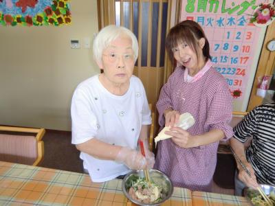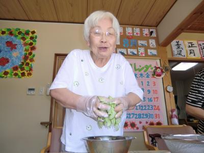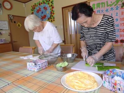 さすが熟練主婦お二人。上手にきゅうりの輪切り。