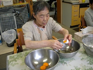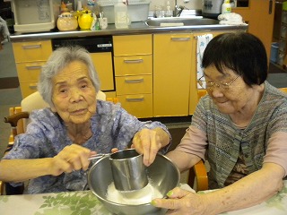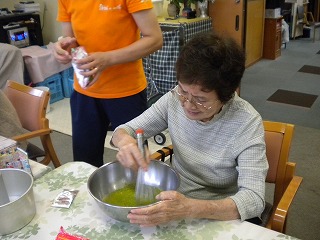 午前中はリハビリ体操と抹茶シフォンケーキ作りを行いました