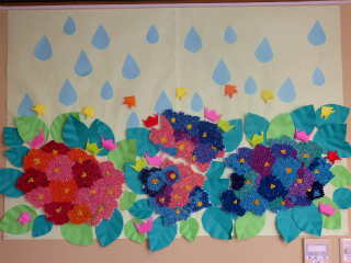 紫陽花はこんな小さなロールを作り、並べ貼りました