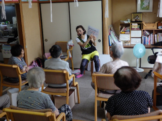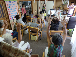 「故郷」の歌詞の意味を体全体で表現しながらの体操は、