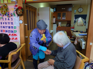 今年も「あさひ歌謡バンド」メンバーの方々がまんまへ素敵な歌声を届けて下さいました。出演者の方が「瞼の母」を熱唱し利用者様お一人お一人と握手をしながらお席まで回って下さいました[emoji:e-289]